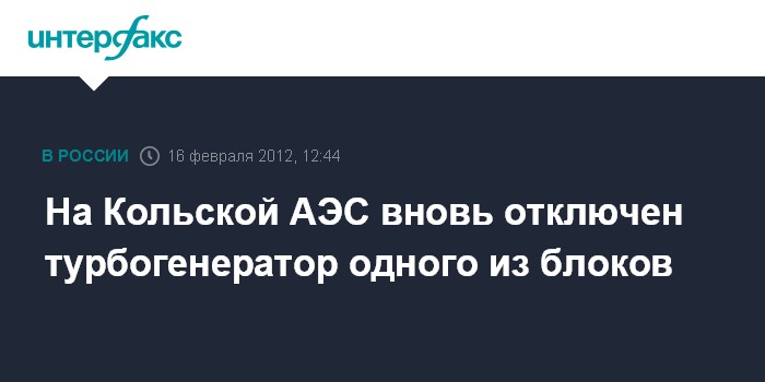 Мурманск. 16 февраля. INTERFAX.RU - На Кольской АЭС (Мурманская область) в ночь на четверг действием электрической защиты отключен от сети турбогенератор N8 четвертого энергоблока, говорится в сообщении станции.