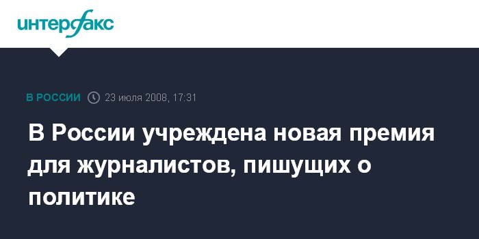 Москва. 23 июля. INTERFAX.RU - Институт общественного проектирования объявил об учреждении новой всероссийской премии в области общественно-политической журналистики и политической рекламы - "Власть №4".