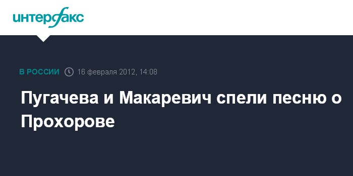 Москва. 16 февраля. INTERFAX.RU - Алла Пугачева и Андрей Макаревич записали песню "Самый высокий" в поддержку кандидата в президенты РФ Михаила Прохорова.