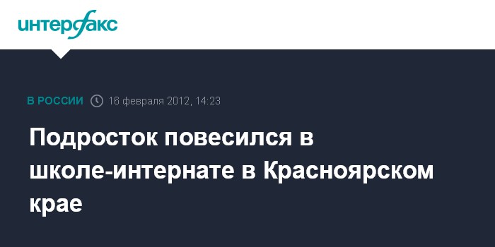Красноярск. 16 февраля. INTERFAX.RU - Тело ученика седьмого класса было найдено повешенным на шарфе, привязанном к батарее, в одной из комнат школы-интерната в поселке Хатанга Таймырского района, сообщает в четверг Главное следственное управление СКР по Красноярскому краю.