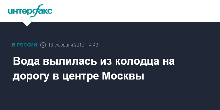 Москва. 16 февраля. INTERFAX.RU - Вода стала поступать из колодца на проезжую часть в центре Москвы в Коробейниковом переулке в районе дома 14 в четверг днем, сообщили "Интерфаксу" в пресс-службе МГУП "Мосводоканал".