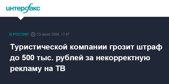 Туристической компании грозит штраф до 500 тыс. рублей за некорректную рекламу на ТВ
