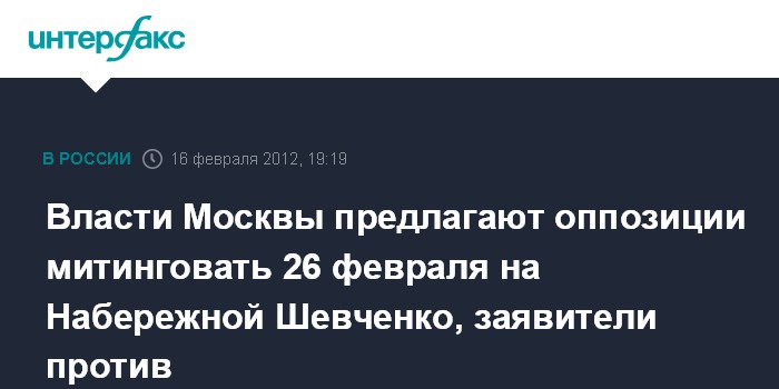 Власти Москвы предлагают оппозиции митинговать 26 февраля на Набережной Шевченко, заявители против