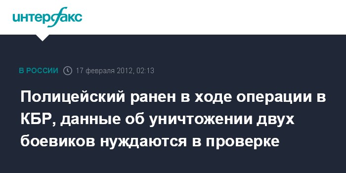 Полицейский ранен в ходе операции в КБР, данные об уничтожении двух боевиков нуждаются в проверке