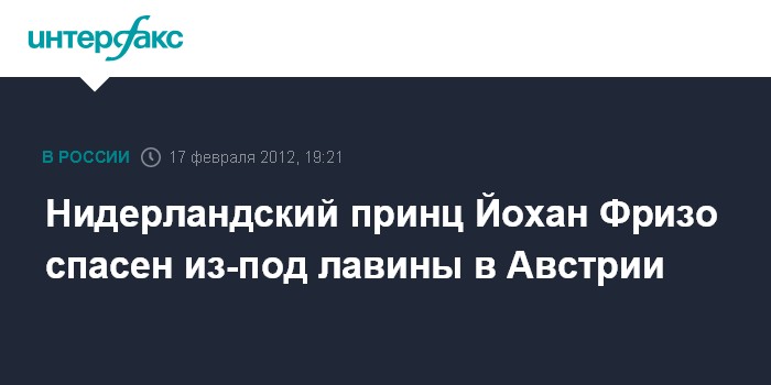 Лондон. 17 февраля. ИНТЕРФАКС - Австрийские спасатели вызволили из-под снега нидерландского принца Йохана Фризо, на которого сошла лавина, сообщает в пятницу британская телерадиокорпорация BBC.