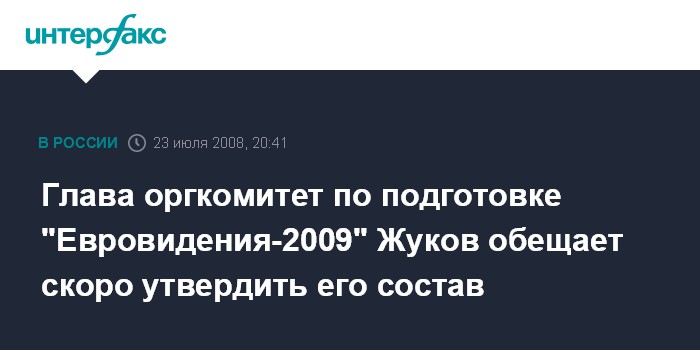 Глава оргкомитет по подготовке "Евровидения-2009" Жуков обещает скоро утвердить его состав