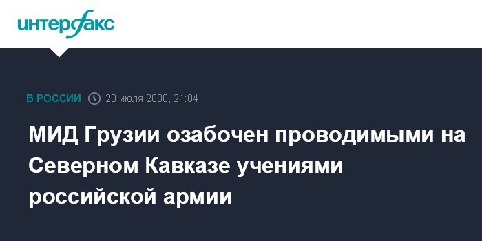 "На фоне проводимой Российской Федерацией в последний период агрессивной политики против Грузии, цели и масштабы проводимых вблизи ее границ военных учений вызывает у грузинской стороны серьезное беспокойство, тем более, что по оценкам российских экспертов в учениях "Кавказ 2008" принимают участие гораздо больше живой силы и военной техники, чем об этом официально было объявлено", - сказано в комментарии департамента информации и печати МИД Грузии, распространенном в среду.