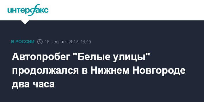 Нижний Новгород. 19 февраля. INTERFAX.RU - В Нижнем Новгороде завершился автопробег с участием около 50 автомобилей с целью привлечения внимания общества к нарушениям на выборах, сообщает корреспондент "Интерфакс-Поволжье", присутствующий на акции.