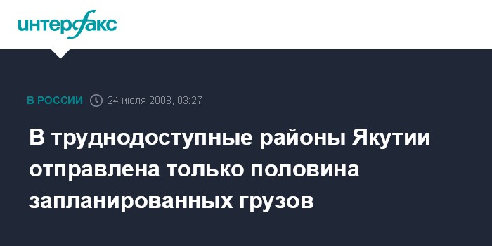 Якутск. 24 июля. ИНТЕРФАКС-ДАЛЬНИЙ ВОСТОК - На север Якутии в летнюю навигацию уже доставлено 994 тыс. тонн различных грузов, что составляет 49% от общего объема грузов, запланированных на зиму.