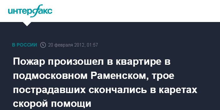 Пожар произошел в квартире в подмосковном Раменском, трое пострадавших скончались в каретах скорой помощи