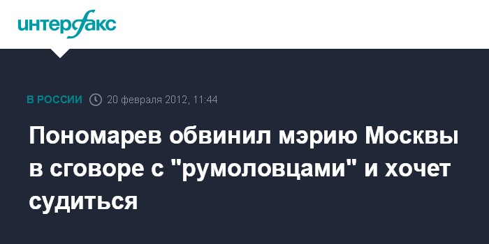Пономарев обвинил мэрию Москвы в сговоре с "румоловцами" и хочет судиться