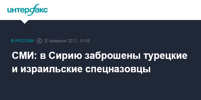 Тегеран. 20 февраля. INTERFAX.RU - На территории Сирии действуют отряды турецких и израильских спецназовцев, которые оказывают помощь оппозиции в попытке свергнуть режим Башара Асада, сообщили иранские СМИ.