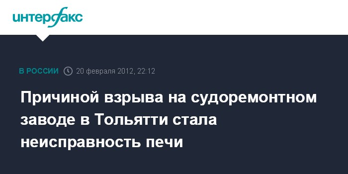 Причиной взрыва на судоремонтном заводе в Тольятти стала неисправность печи