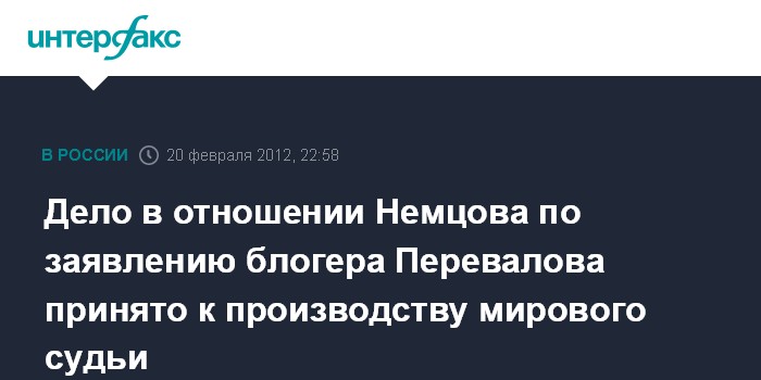 Дело в отношении Немцова по заявлению блогера Перевалова принято к производству мирового судьи