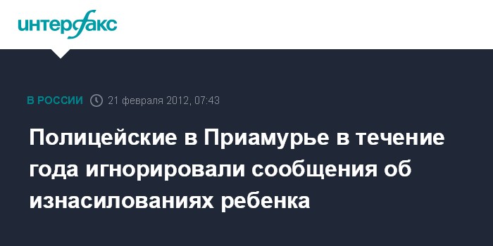 "Установлено, что в период с 2010 по 2011 годы жительница Зеи неоднократно сообщала сотрудникам местного ОВД что ее сожитель регулярно насилует ее же 12-летнюю дочь. Эти сообщения полицейские в установленном законом порядке не регистрировали и никаких действий не предпринимали", - сообщает прокуратура Амурской области.