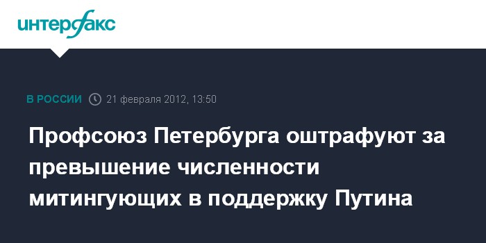 Профсоюз Петербурга оштрафуют за превышение численности митингующих в поддержку Путина