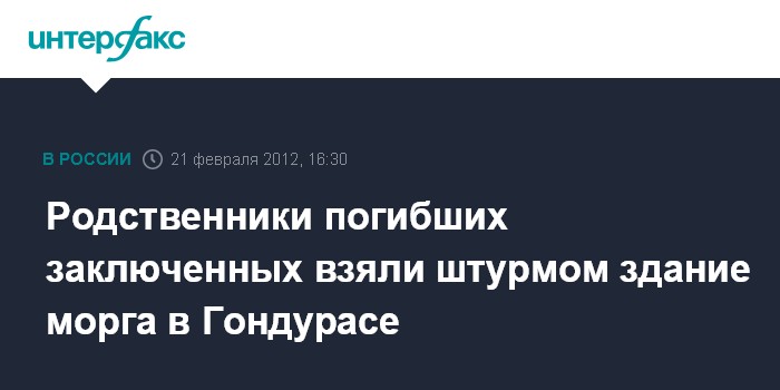 Лондон. 21 февраля. INTERFAX.RU - Близкие заключенных, сгоревших недавно в тюрьме в гондурасском департаменте Комаягуа, ворвались в здание морга, чтобы забрать тела погибших, сообщила во вторник BBC.