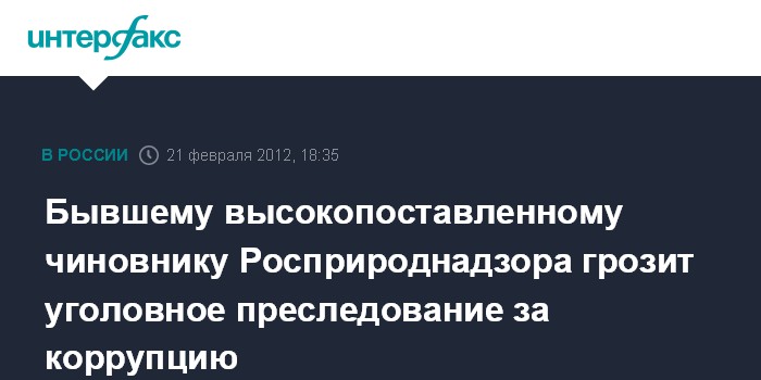Москва. 21 февраля. INTERFAX.RU - Бывший замглавы Росприроднадзора может стать фигурантом коррупционного дела, связанного с фактами вымогательств и получения взяток экс-сотрудниками ведомства.