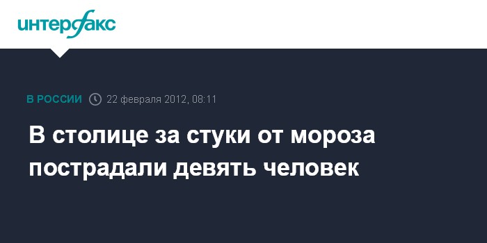 Москва. 22 февраля. INTERFAX.RU - Девять человек пострадали от холода за сутки в Москве, сообщил "Интерфаксу" источник в медицинских кругах столицы.