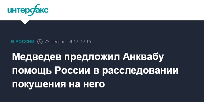Медведев предложил Анквабу помощь России в расследовании покушения на него