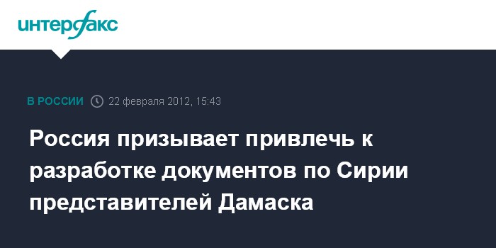 Москва. 22 февраля. INTERFAX.RU - Россия считает неправильным выработку каких-либо документов по сирийскому урегулированию без участия представителей официального Дамаска, заявил заместитель министра иностранных дел РФ Геннадий Гатилов.