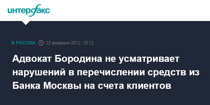 Адвокат Бородина не усматривает нарушений в перечислении средств из Банка Москвы на счета клиентов