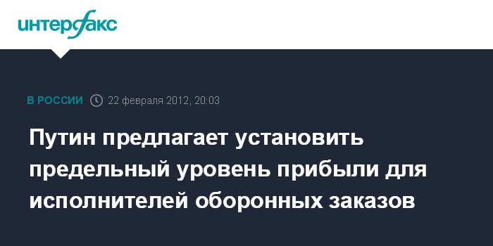 "Требуется закрепить принципы и методы государственного регулирования цен на поставляемую оборонную продукцию. В том числе определить предельный уровень прибыли исполнителей заказов", - заявил Путин на заседании президиума правительства РФ.