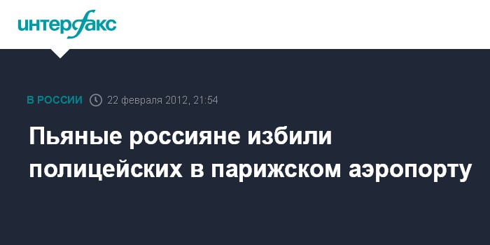 Париж. 22 февраля. INTERFAX.RU - Нетрезвые россияне, отказывавшиеся покинуть борт самолета в парижском аэропорту "Руасси", оказали сопротивление полицейским, в результате чего двое стражей порядка получили травмы, сообщает сайт газеты Le Figaro.