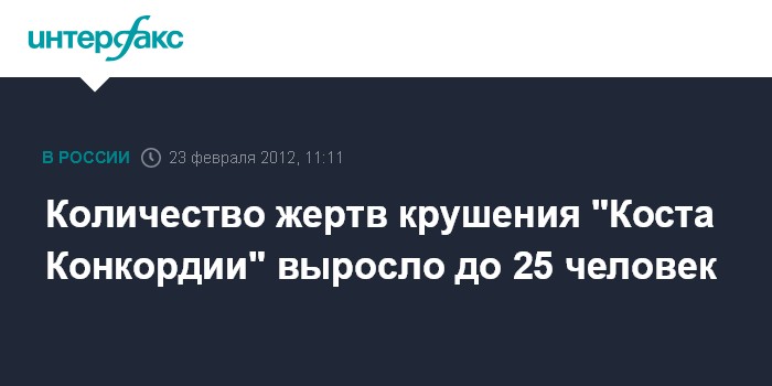Количество жертв крушения "Коста Конкордии" выросло до 25 человек