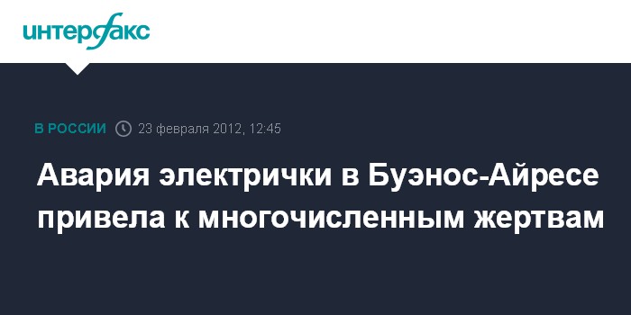 Вашингтон. 23 февраля. INTERFAX.RU - По меньшей мере, 49 человек погибли и более 600 получили ранения в результате аварии электрички на одной из самых загруженных станций аргентинской столицы Буэнос-Айреса, сообщает американский телеканал "Скай-Ньюс". Пассажирский электропоезд пригородного сообщения не смог остановиться на железнодорожной станции и врезался в тупиковый упор. На месте трагедии работают спасатели и бригады скорой помощи. Причина трагедии выясняется.