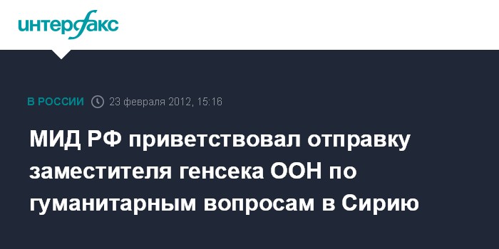Москва. 23 февраля. INTERFAX.RU - МИД РФ в четверг заявил, что решение о направлении в Сирию заместителя генерального секретаря ООН по гуманитарным вопросам лежит в русле инициативы Москвы.