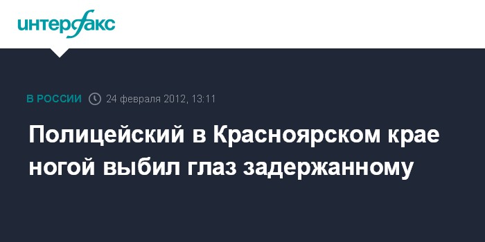 Полицейский в Красноярском крае ногой выбил глаз задержанному
