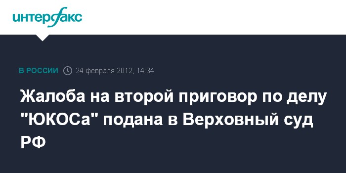 Москва. 24 февраля. INTERFAX.RU - Защита бывших руководителя НК "ЮКОС" Михаила Ходорковского и Платона Лебедева обжаловала второй приговор клиентам в Верховном суде РФ.