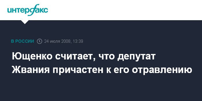 Москва. 24 июля. INTERFAX.RU - Президент Украины Виктор Ющенко думает, что народный депутат Давид Жвания причастен к его отравлению в 2004 году.