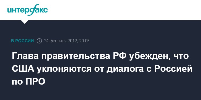 Глава правительства РФ убежден, что США уклоняются от диалога с Россией по ПРО