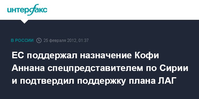 ЕС поддержал назначение Кофи Аннана спецпредставителем по Сирии и подтвердил поддержку плана ЛАГ