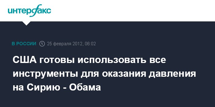 Вашингтон. 25 февраля. ИНТЕРФАКС - Соединенные Штаты готовы к тому, чтобы использовать все инструменты для давления на президента Сирии Башара Асада с тем, чтобы вынудить его уйти в отставку, заявил президент США Барак Обама.