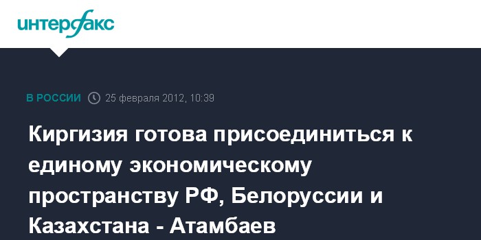 Москва. 25 февраля. INTERFAX.RU - Киргизия решительно настроена на дальнейшую экономическую интеграцию на постсоветском пространстве, республика готова вступить в ЕврАзЭС, заявляет президент Алмазбек Атамбаев.