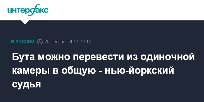 Бута можно перевести из одиночной камеры в общую - нью-йоркский судья