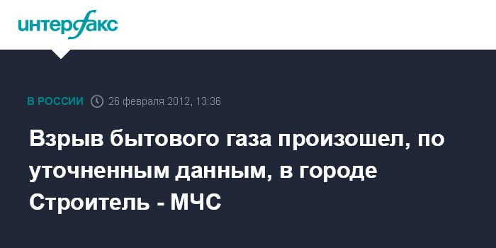 Взрыв бытового газа произошел, по уточненным данным, в городе Строитель - МЧС