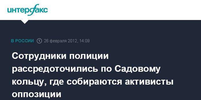 Москва. 26 февраля. INTERFAX.RU - Столичная полиция стягивает силы правопорядка на Садовое кольцо, где активисты оппозиции планируют провести акцию "Большой белый круг".