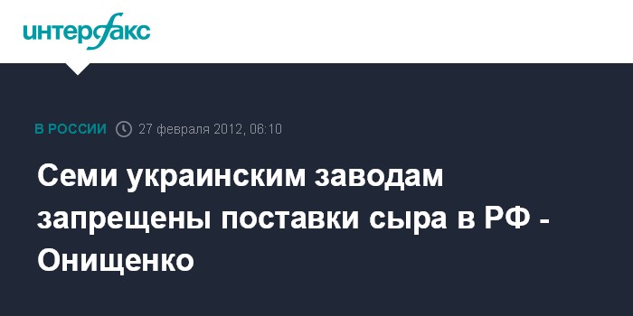 Ранее он заявил "Интерфаксу", что претензии к украинскому сыру связаны с тем, что эта продукция не соответствует российскому техрегламенту на молоко и молочную продукцию.