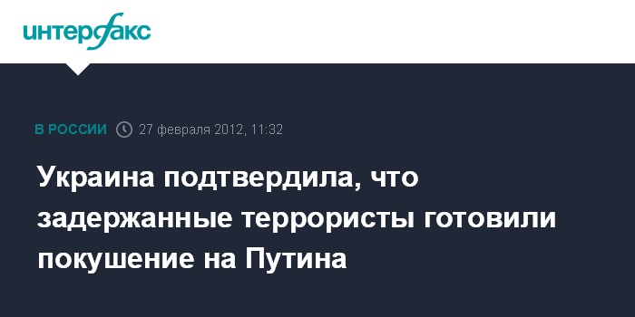 Киев. 27 февраля. INTERFAX.RU - В Службе безопасности Украины подтвердили появившуюся в понедельник информацию о том, что российские и украинские спецслужбы предотвратили планы террористов, задержанных в Одессе, которые готовили покушение на премьер-министра России Владимира Путина.