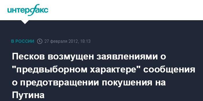 Москва. 27 февраля. INTERFAX.RU - Пресс-секретарь премьер-министра РФ Дмитрий Песков называет кощунственными заявления о том, что история с предотвращением покушения на Владимира Путина носит "предвыборный характер".