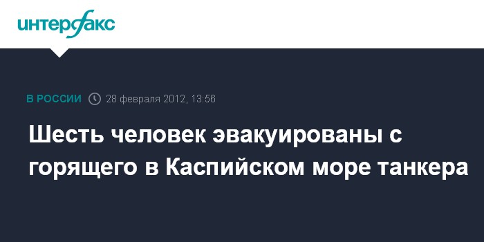 Шесть человек эвакуированы с горящего в Каспийском море танкера