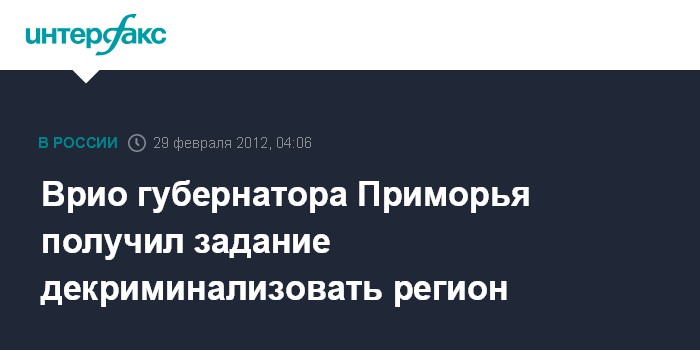 Москва. 29 февраля. ИНТЕРФАКС - Врио губернатора Приморья Владимир Миклушевский заявляет о намерении бороться с криминалом и коррупцией в регионе.