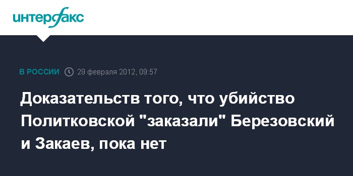 Вместе с тем, по его словам, правоохранительные органы пока не располагают вескими доказательствами, что убийство Политковской было совершено по заказу Березовского и Закаева.