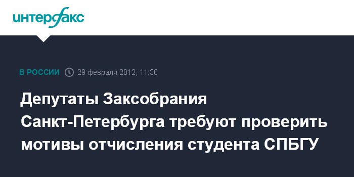 Депутаты Заксобрания Санкт-Петербурга требуют проверить мотивы отчисления студента СПБГУ