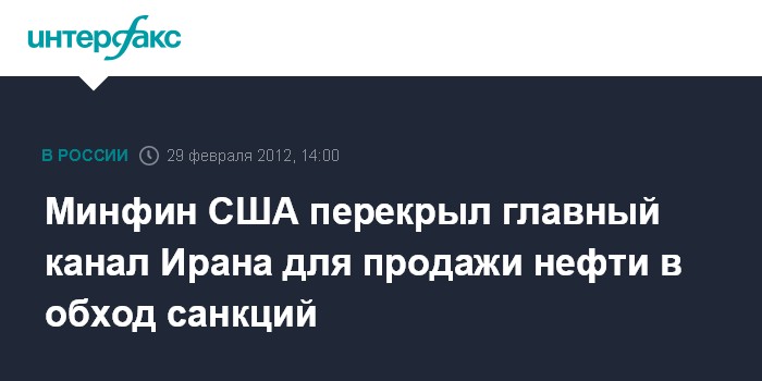 Вашингтон. 29 февраля. INTERFAX.RU - Министерство финансов США помешало осуществить банковскую операцию в дубайском исламском банке "Нур", который, как полагают американцы, является основным каналом Ирана для продажи нефти в обход санкций, сообщила в среду The Wall Street Journal.