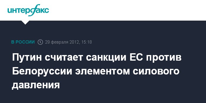 Москва. 29 февраля. INTERFAX.RU - Премьер РФ Владимир Путин считает неприемлемыми и бессмысленными санкции, введенные Евросоюзом в отношении Белоруссии.